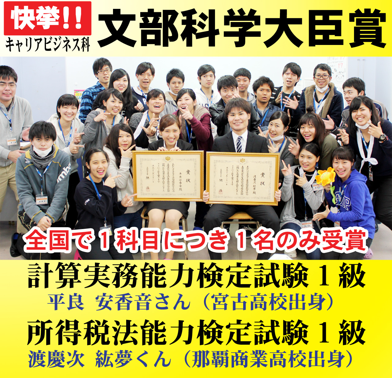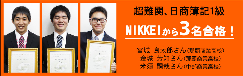 沖縄県内は95名受験し3名が合格! そのうち2名がNIKKEIキャリアビジネス科の学生でした!